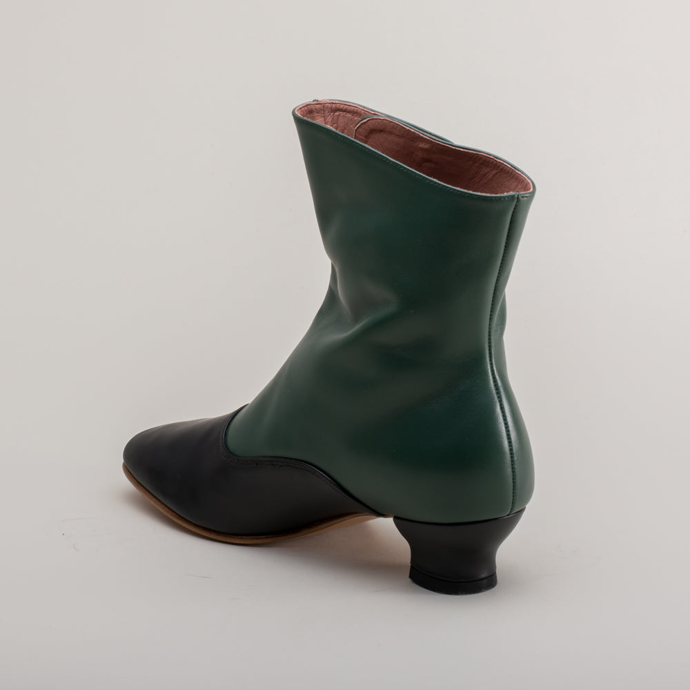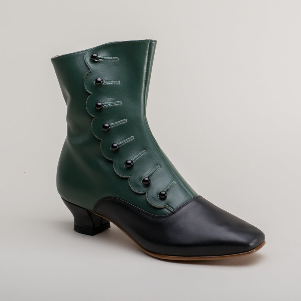 These mid-Victorian and Bustle Era boots have square toes, a short heel molded from an original, and an attractive scalloped edge and top, making them practical yet feminine, and ideal for a fashionable Victorian lady.