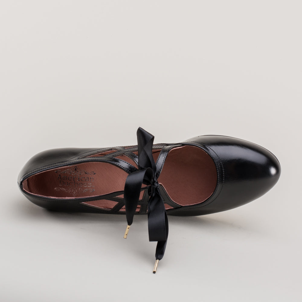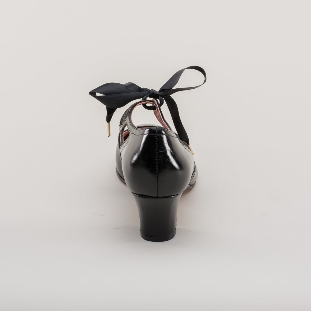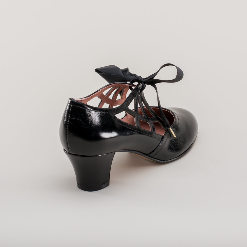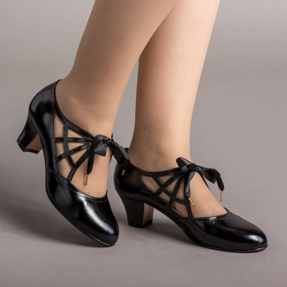 The original Parker Spiderweb Pumps were made in black patent leather, to which we have stayed faithful with our glossy, high-grade glacé calf. Wear Parkers all year around to add a little gothy interest to any outfit both historical and modern. They're perfect for any vintage attire along with Lolita, Steampunk, Dark Academia, and other aesthetic dress