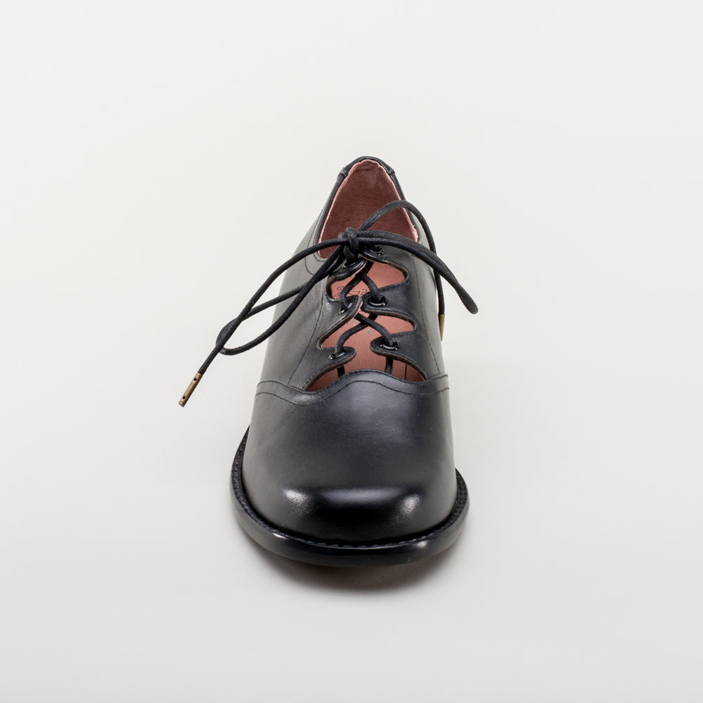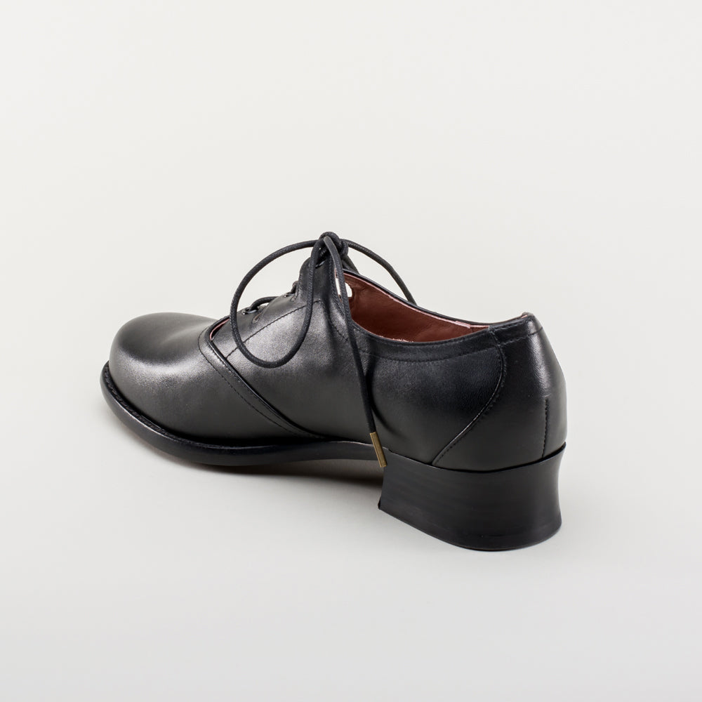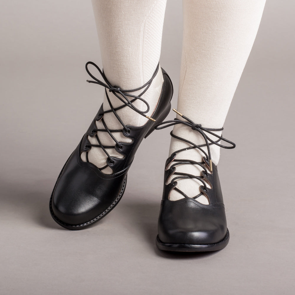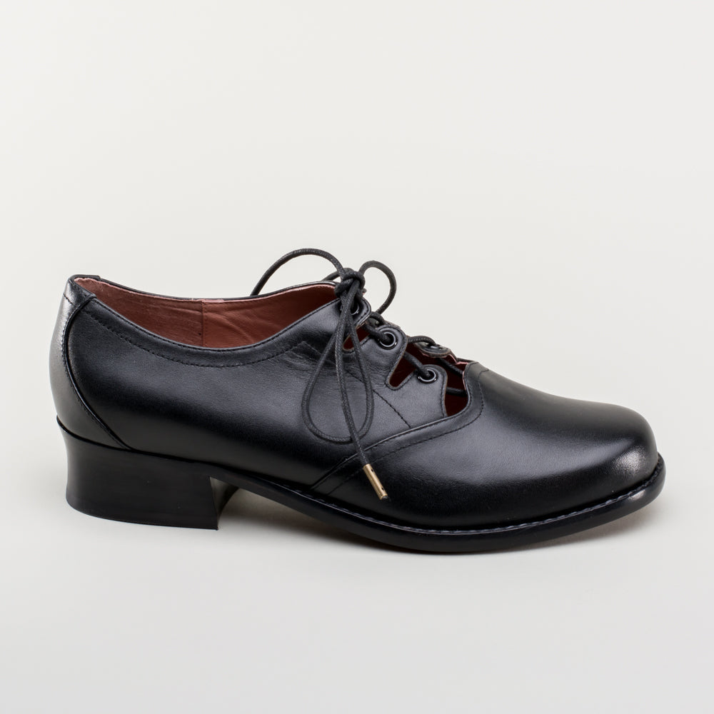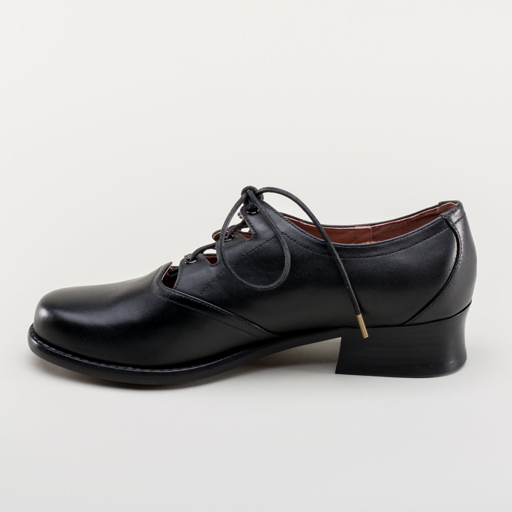 Made in all leather with leather soles, the Ghillies come with two sets of laces for different looks. A sculptural, round toe is paired with our stable 1.25 inch / 3.2 cm heel. These are an all-day every-day shoe offering an elevated and unique look perfect for the 1930s through the 1960s.