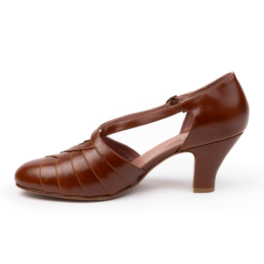 Looking for a shoe that combines the glamour of old Hollywood and all-day wearability? Look no further than Melrose! Based on period originals, these beautiful pumps capture the silhouette and style of the 1930s with sleek straps criss-crossed over the instep, a keyhole opening over the vamp, and gorgeous leather piecing. The straps feature hidden elastic inserts, for additional comfort and ease. Melrose features our classic 2.5"/ 6.35 cm Spanish heel, which is perfectly balanced for comfort. Whether you're donning daywear or evening wear, Melrose fits the occasion.